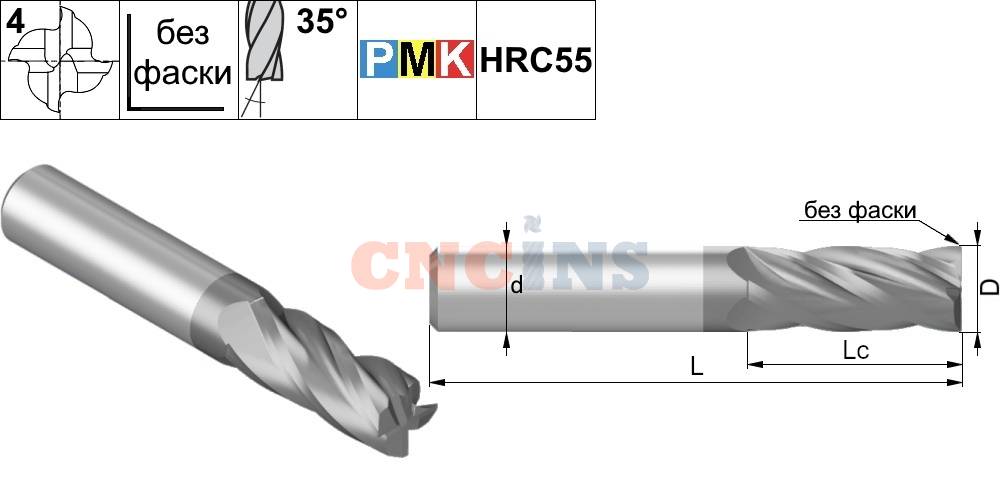 Фреза твердосплавная концевая 4-зубая EM35.12.75.30.00.4F.TiAlN применяется для фрезерования пазов и уступов в материалах: P (сталь), M (нержавеющая сталь), K (чугун). Фреза изготовлена из твердого сплава с нанесением износостойкого покрытия TiAlN. Прямой угол при вершине (без фаски). Угол подъема спирали 35°. Диаметр фрезы 12 мм, длина режущей части 30 мм, общая длина 75 мм. Тип хвостовика - цилиндрический (h6).