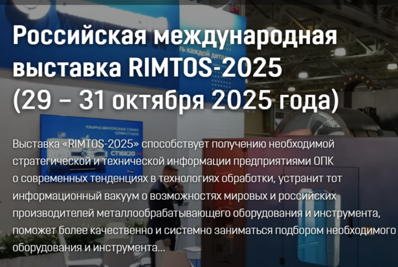 Приглашаем Вас посетить наш стенд в период с 29 по 31 октября 2025 года на Выставке «RIMTOS-2025», Московская обл., г. Красногорск, ул. Международная, д.16, Павильон 2, зал 5, Стенды В1-1 и В6-1.